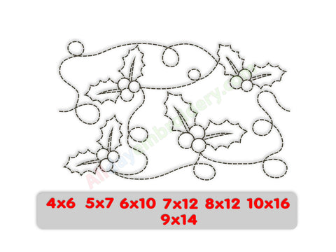 Holly quilting embroidery design. Ideal for edge-to-edge (E2E) machine quilting or individual quilting blocks.