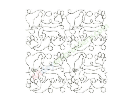 Cat quilting embroidery design. Ideal for edge-to-edge (E2E) machine quilting or individual quilting blocks.