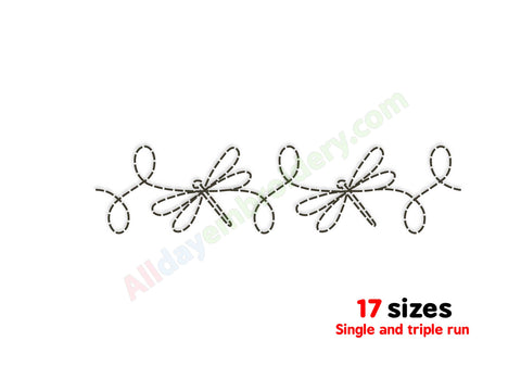 - Dragonfly quilt block design in both single run and triple (bean) stitch styles