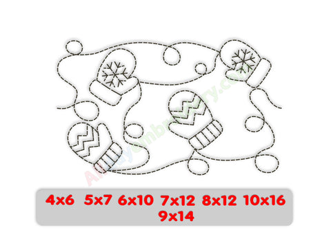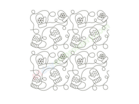 Mittens quilting embroidery design. Ideal for edge-to-edge (E2E) machine quilting or individual quilting blocks.
