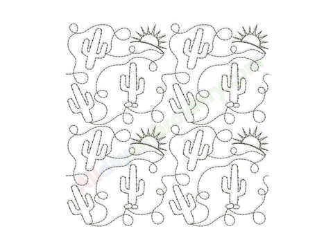 Desert Cactus quilting embroidery design. Ideal for edge-to-edge (E2E) machine quilting or individual quilting blocks.