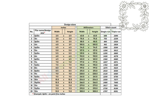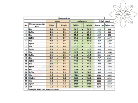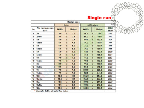 Your purchase will include single run stitch and triple (bean) stitch embroidery design versions.