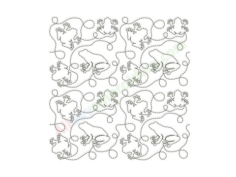 Frog quilting embroidery design. Ideal for edge-to-edge (E2E) machine quilting or individual quilting blocks.
