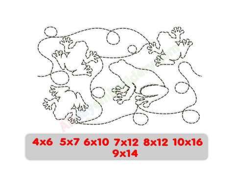 Frog Quilting Embroidery Design. Frog Quilting Design Set for Embroidery and Long arm Machines Frog quilting embroidery design. Ideal for edge-to-edge (E2E) machine quilting or individual quilting blocks. What’s Included...- Quality GuaranteedQuality checked