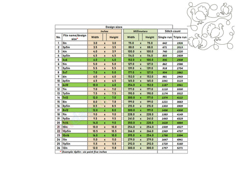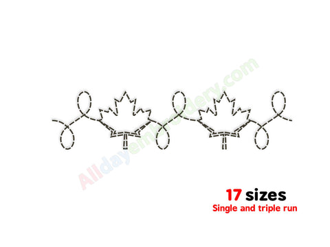 The Maple leaf border design is included in widths from 4 to 12 inches. A full list of dimensions is shown in the product images. Please avoid resizing the files to maintain proper stitch quality.