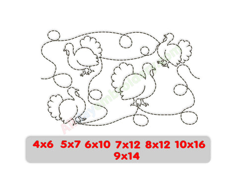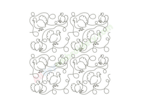 Turkey quilting embroidery design. Ideal for edge-to-edge (E2E) machine quilting or individual quilting blocks.